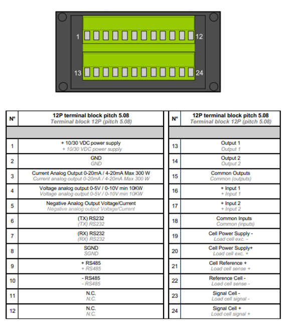 Tensão de operação5Vdc (entrada da célula), ± 10 V/±5V (saída de tensão analógica), 0 ± 20 mA/4±20 mA (saída analógica de corrente)